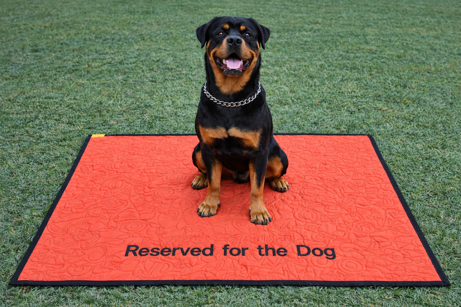 • Large dog mat with bold ownership attitude